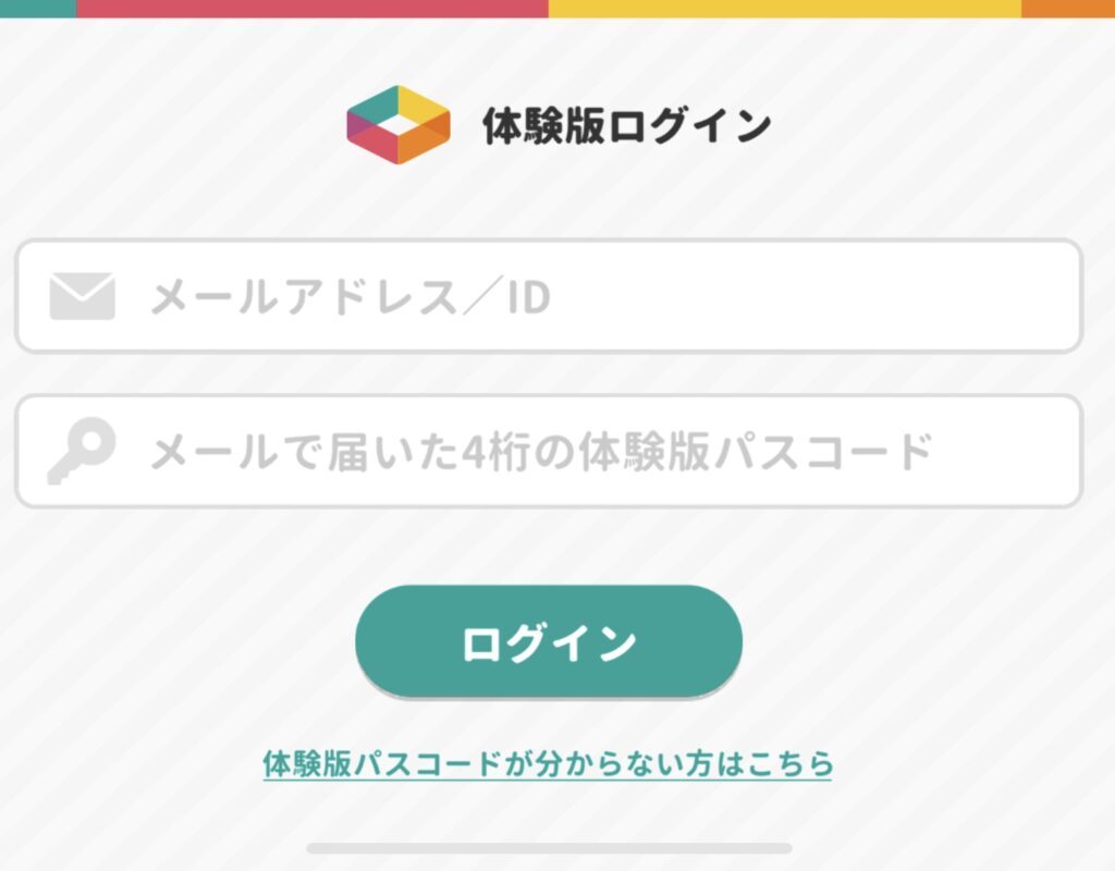 資料請求が完了すると登録したメールアドレスに「パスコード」が届きます!ワンダーボックスのアプリをダウンロード後、「体験版はこちら」をクリック!
