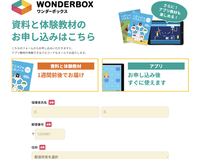 早速無料体験したい方は、ワンダーボックス公式サイトから資料請求をしてみてください!